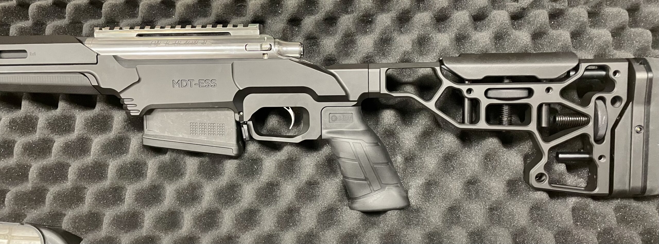 Osada wysokiej klasy MDT ESS LA RH czarny mat nie łamana z najwyższym modelem regulowanej na wszelkie sposoby kolby MDT SRS ELITE, z chwytem ukośnym gumowym (lepszy do leżenia,